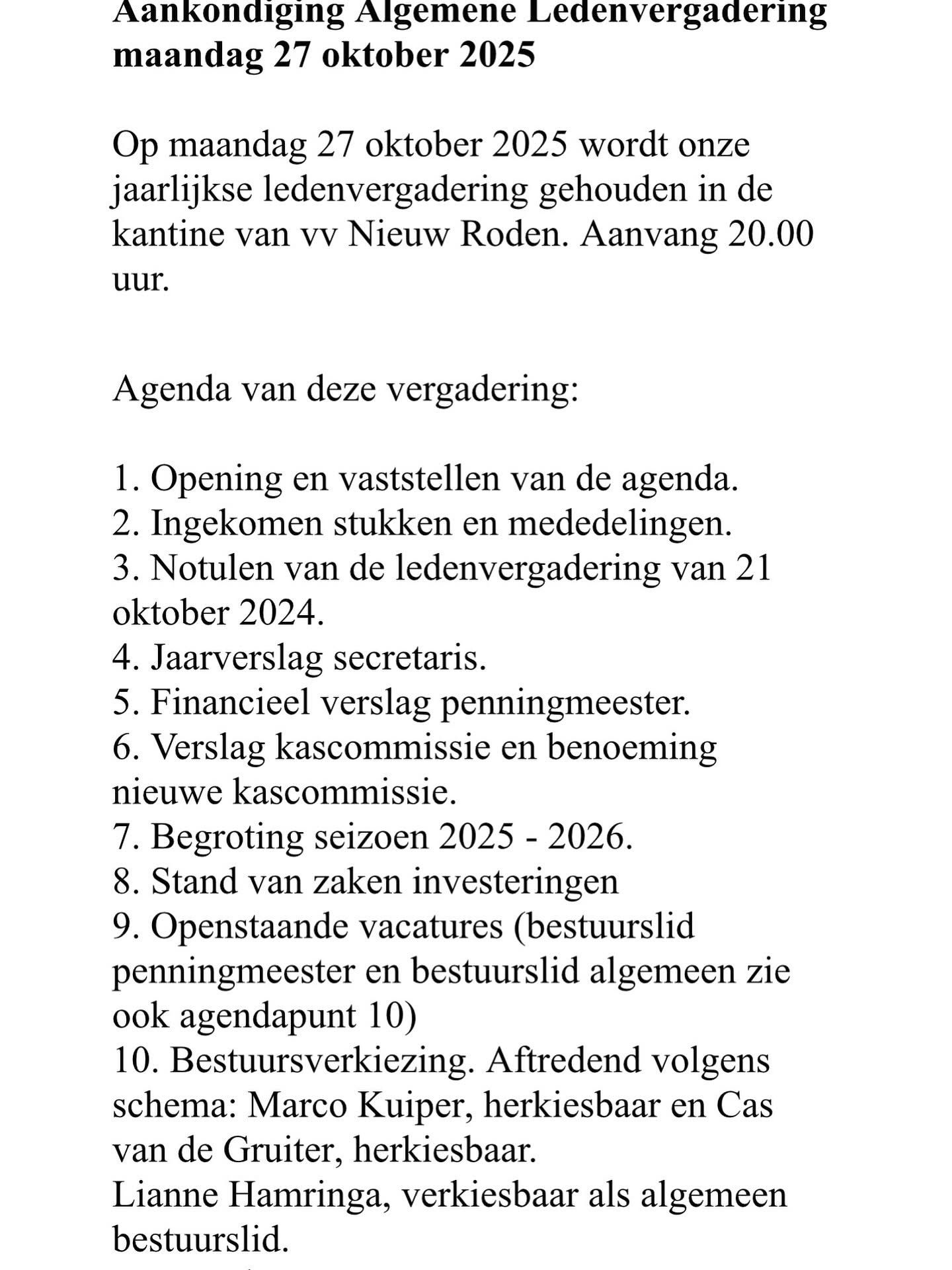 Maandagavond 27 oktober staat de jaarlijkse algemene ledenvergadering weer op het programma. Wil jij je stem laten horen? Kom dan langs in de kantine op 27 oktober 🗓️