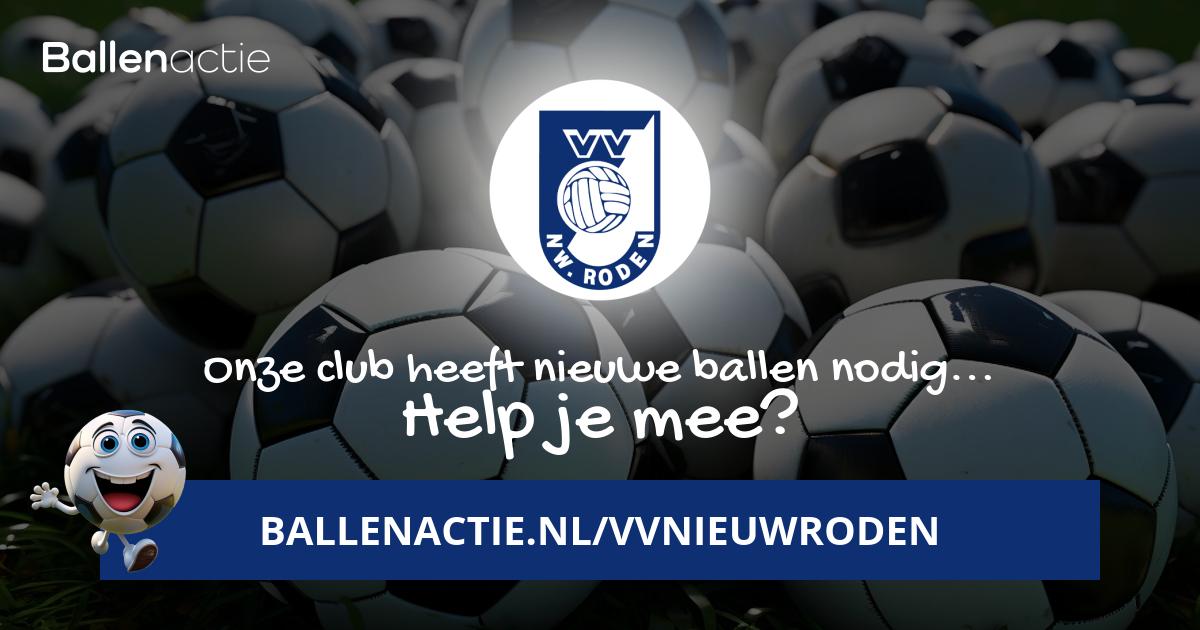 Deze week starten we bij vv Nieuw Roden met de Ballenactie. Met deze actie willen we ballen inzamelen voor onze vereniging. Help je mee?